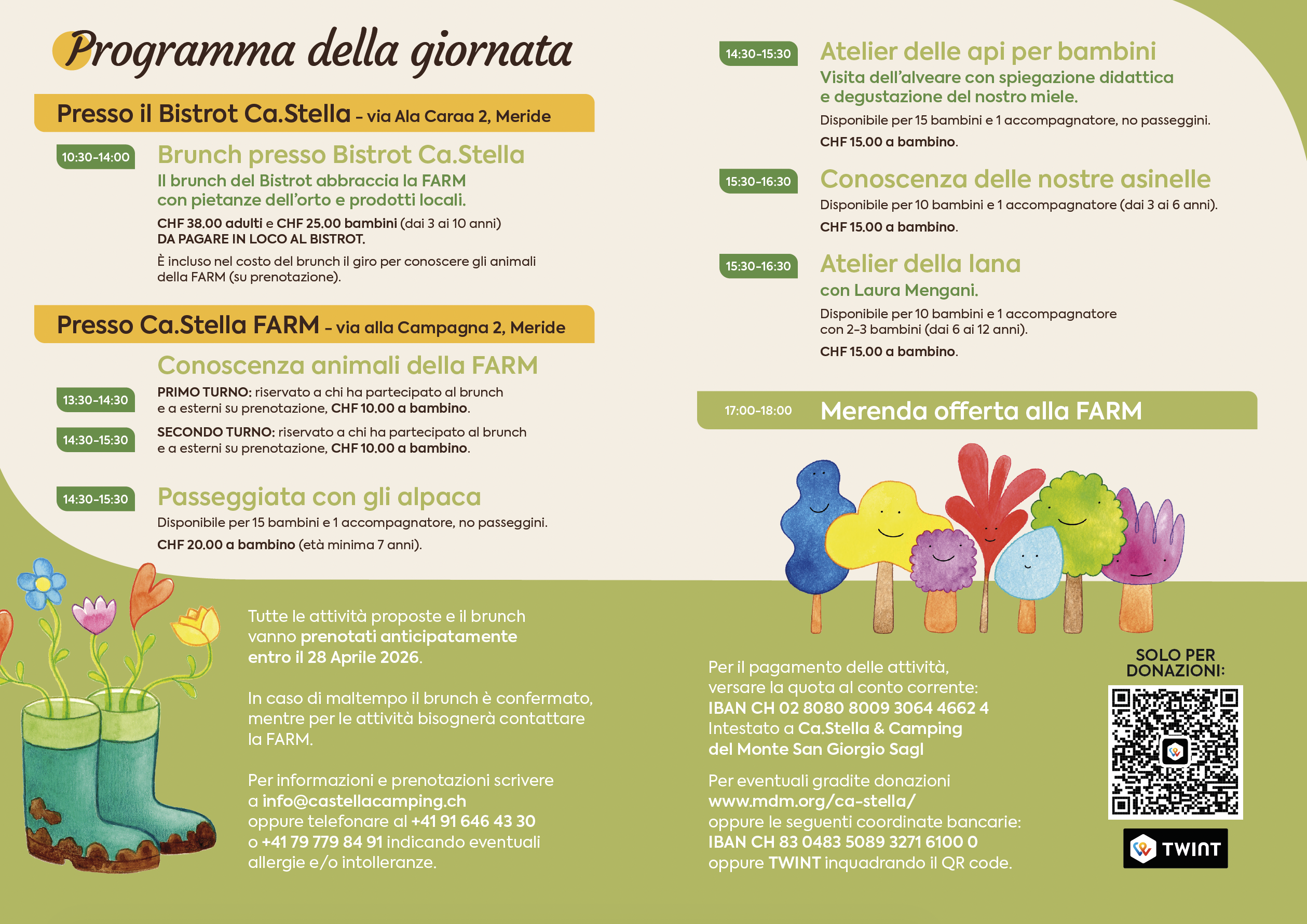 Prenotazione obbligatoria entro il 30 aprile 2026 per tutte le attività e il Brunch.